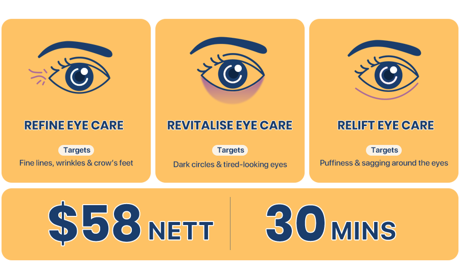 Targeted care for every eye concern, whether it’s fine lines, dark circles or puffiness, there’s a treatment made just for you.